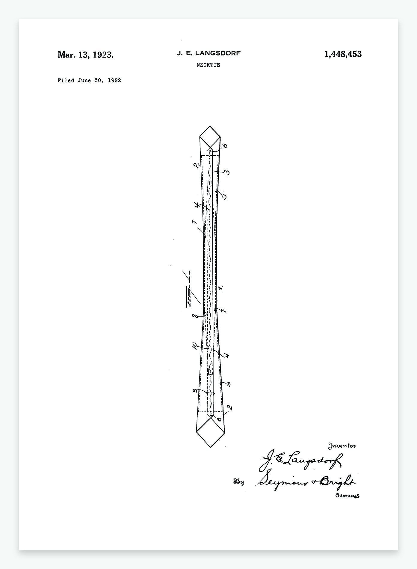 Denne smukke patenttegning er ansøgt af J. E. Langstors og udstedt den 13-03-1923.