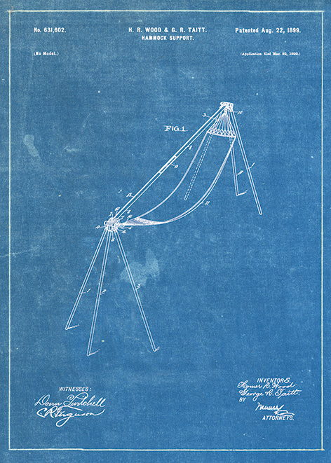 Denne smukke patenttegning er ansøgt af H. R. Wood & G. R. Taitt og udstedt den 22. august 1899.