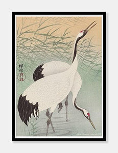 Smuk plakat med hejrer i sarte grønne og orange nuancer. De lyse farver og det stiliserede udtryk vil passe godt ind i et lyst, nordisk hjem.
